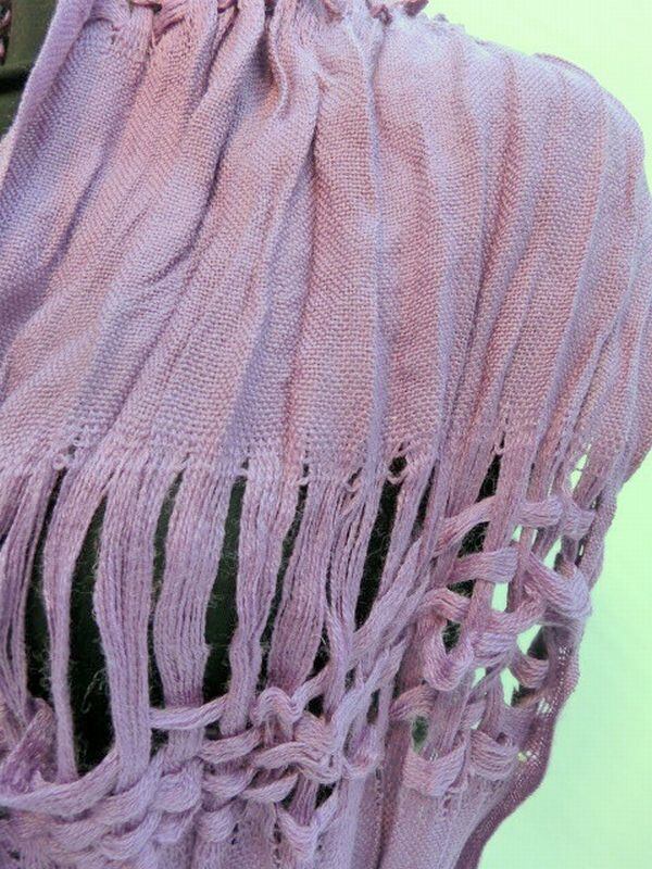 シワ加工を施した柔らかい生地に、編み柄を入れ込んだオシャレなストールです。綺麗な明るいカラーなので差し色にピッタリ♪