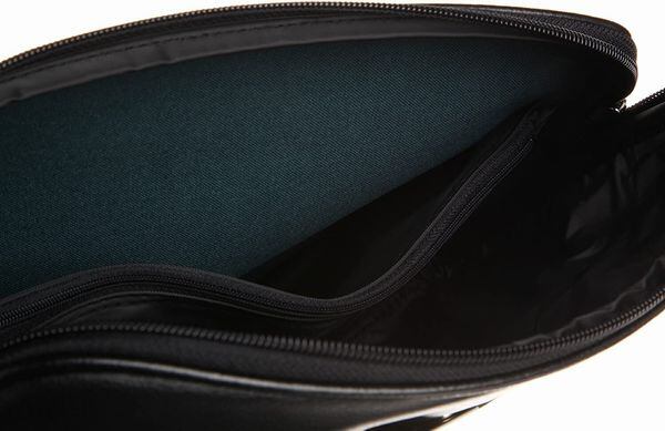 熟練の職人が一品づつ丁寧な仕事で手作りしています。本体は柔らかな手触りの合成皮革製で、水や汚れに強いです。内部は無駄な装飾のなされていないシンプルな内装なので、細々としたものを持ち歩くにはもってこいのポーチです。内部真ん中部分に仕切り兼ファスナーポケットがあります。