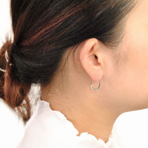 艶やかなメタルフォルムが美しい、ドロップ型のミニフープピアス♪
