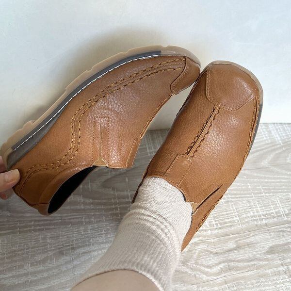 スリッポン レディースシューズ レディースファッション 靴 ModaLadian カジュアル シボ感 ステッチ手縫い ソール軽い 幅広さん 外反母趾の方 【3018-10766914】