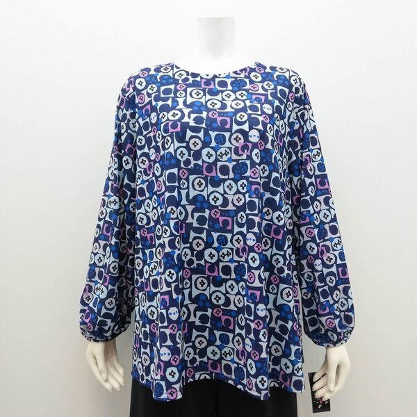 長袖 Tシャツ カットソー トップス レディースファッション プリント 袖パイピング ストレッチ性あり サラっとした ポリエステル生地 ゆったりサイズ 体型カバー 【3031-11057758】