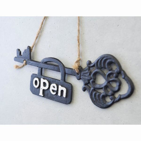 鍵モチーフのOPEN & CLOSED ウェルカムサインプレートです。