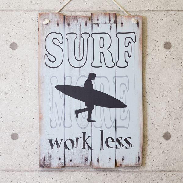 レリーフ アート ウォールデコレーション 家具 インテリア ウッドボード SURF MORE アンティーク ユーズドのような仕上げ 木製プレート お店 お家のドア 玄関 リビング 壁掛け 裏側フック穴 麻紐付き 【3032-10759086】