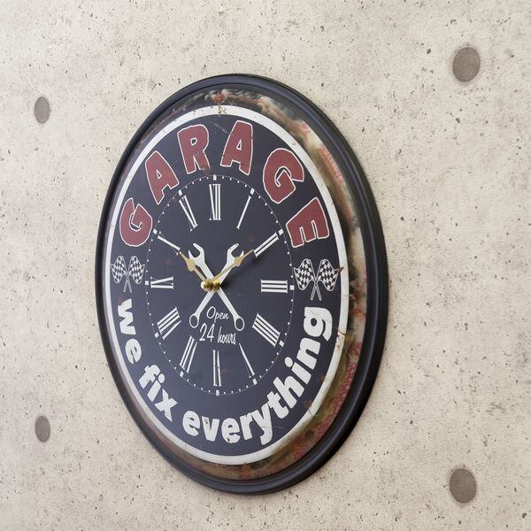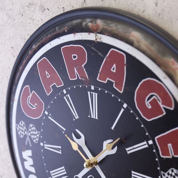 掛け時計 壁掛け時計 インテリア時計 家具 インテリア アンティーク メタルクロック GARAGE インパクト大 錆びた感じ プリント good サイズ40cm 軽量 取り付けやすい 気軽 インテリアに お部屋に飾る 時計 凝ったデザイン 【3032-10759095】