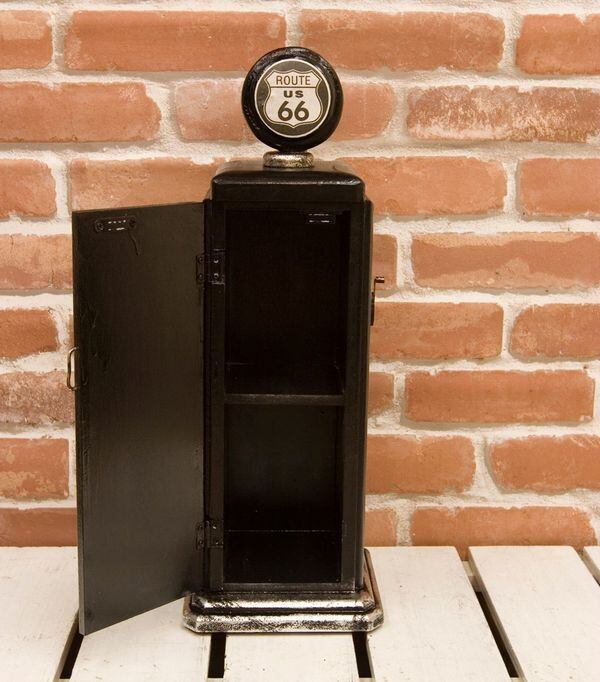 収納ラック ラック シェルフ 本棚 家具 インテリア アンティーク アイテム ガスポンプ マルチキャビネット ROUTE66 アメリカン雑貨 MULTI CABINET MDF ずっしり 存在感バツグン 前の扉 2段棚 様々なもの収納可能 細部まで再現 お店のディスプレイに 【3032-3040038】