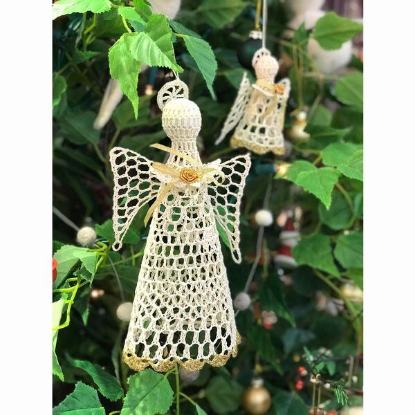 天使をモチーフにしたオーナメントです。レースの柔らかい雰囲気が素敵な商材です。