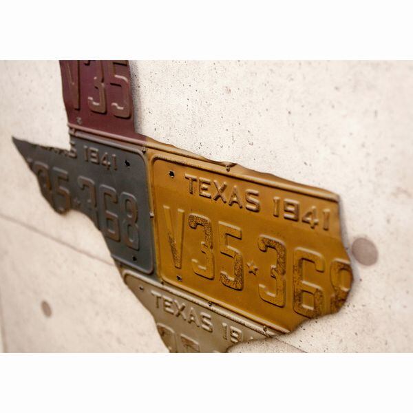 ナンバープレートを貼りあわせて切り抜いたようなデザインのウォールデコです。エンボス加工されてとてもオシャレです。