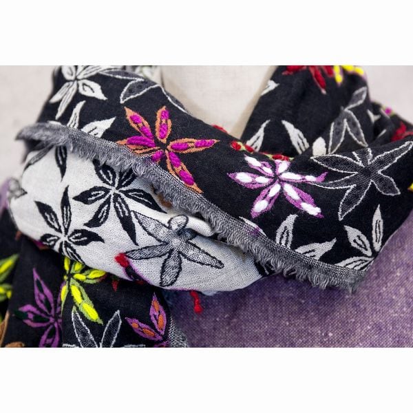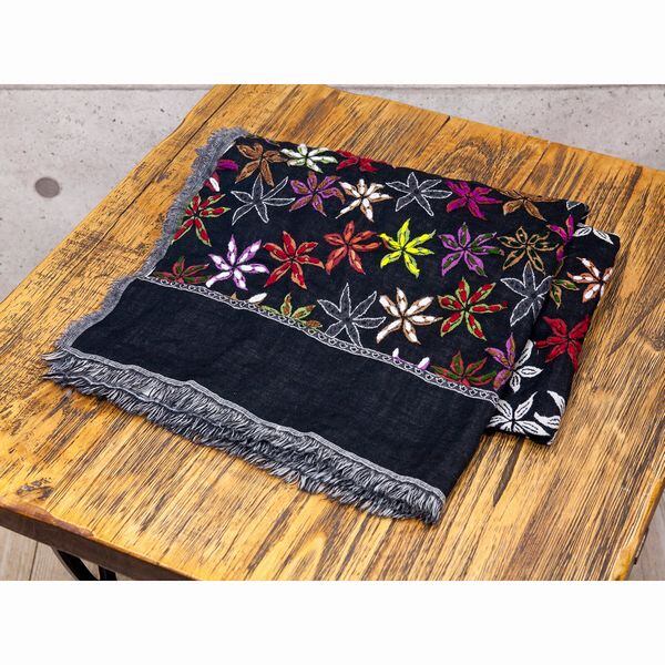 ジャガード生地に手刺繍のをたくさん施した贅沢なストールです。