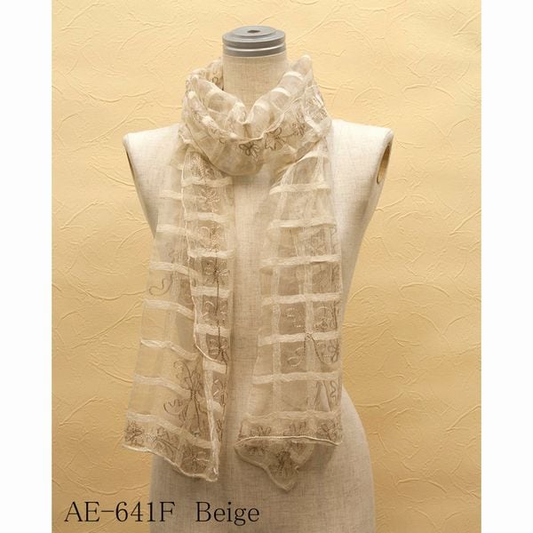ストール ファッション小物 レディースファッション 薄手 シルク格子 花刺繍ストール Beige スケ感 涼やかな雰囲気 シルク 繊細 花がら刺繍 さりげないワンポイント 【3032-6095770】