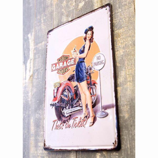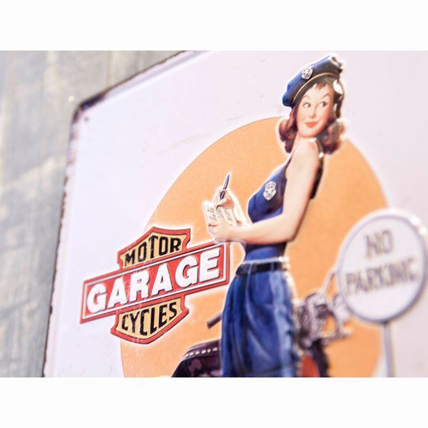 レリーフ アート ウォールデコレーション 家具 インテリア アンティーク メタルエンボスプレート S GARAGE GIRL アメリカン雑貨 バイク 種類豊富 揃えたくなる 複数枚お部屋に飾る おすすめ イラスト部エンボス加工 少し浮き出して見える サイズ20x30cm だいたいA4サイズ 【3032-6530476】