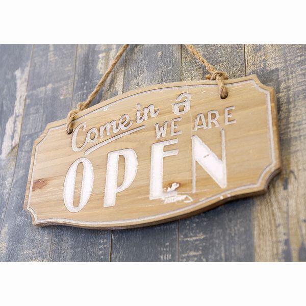 レリーフ アート ウォールデコレーション 家具 インテリア アメリカン クラシック ウォールプレート OPEN CLOSED 1 おしゃれ プレート 両面 ひっくり返すだけ 文字部少し凹 ホワイトペイント加工 ナチュラル お店の雰囲気 【3032-7368667】