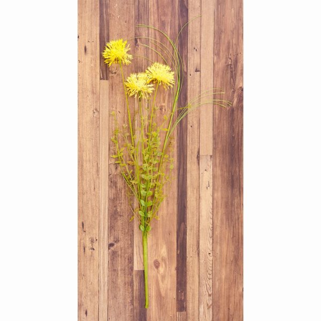 大きめの黄色のお花と植物が一束になった造花です。スワッグの素材としてや、1束がしっかりしているのでそのまま飾ってもかわいいです。
