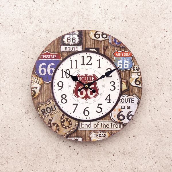 掛け時計 壁掛け時計 インテリア時計 家具 インテリア 掛時計 アンティーク MDFクロック ROUTE 66 End of the Trail おしゃれなデザイン 軽量 ウォールクロック 直径34cm 見やすい 一般的なサイズ 気軽 インテリアに 【3032-9243724】