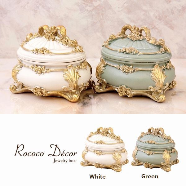 小物収納 小物入れ 整理用品 インテリア雑貨 家具 インテリア ロココデコ ジュエリーボックス アンティーク調 大人のインテリアアイテム オススメ 記念の贈り物 ホワイト グリーン 優しい色味 【3032-9655199】