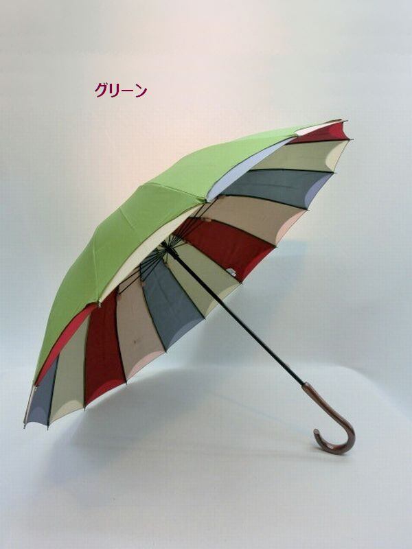 雨傘 傘 ファッション小物 レディースファッション 長傘 婦人 16本骨 表無地裏4色 2重張切り継ぎ 手開傘 二重張り 裏面4色張り分け 手開き 表無地 裏面4色 カラフル 張り分け オシャレ キュート 雨の日が楽しくなる グリーン 【3001-10747949】