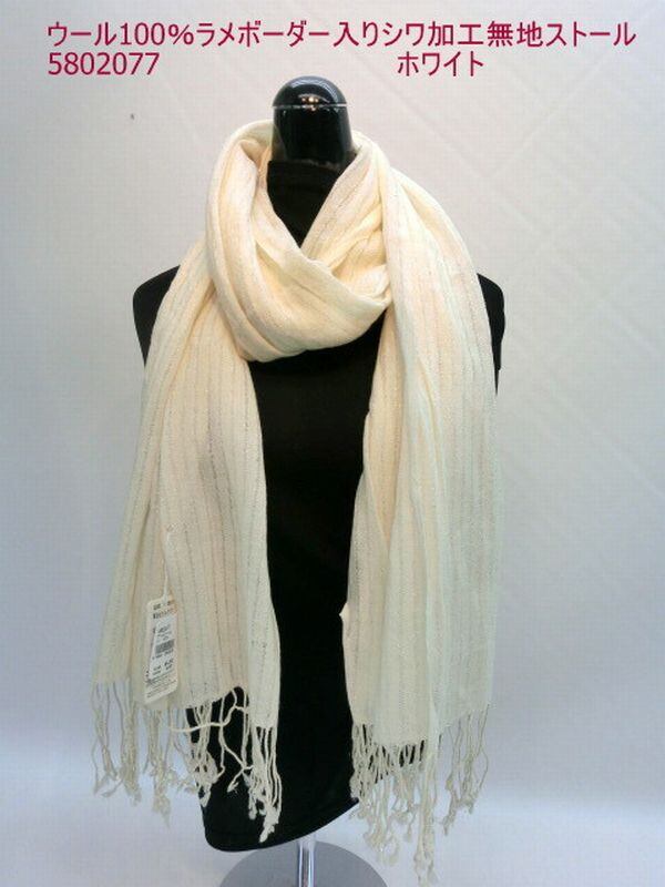 ストール ファッション小物 レディースファッション ウール100% ラメボーダー入り シワ加工 無地ストール 薄手 ラメ入り ウール生地 シャーリング 軽い感じ 秋冬 ファッションのポイント オシャレ ラメ 【3001-10884436】