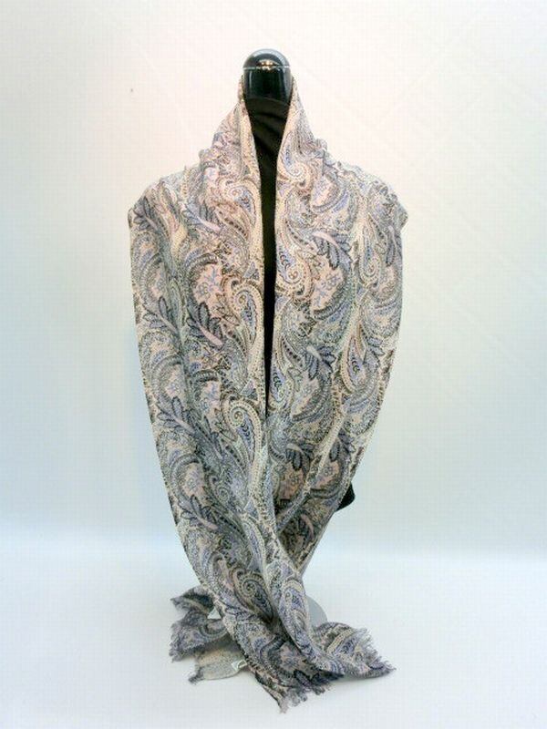 ストール ファッション小物 レディースファッション カシミヤ入り ペイズリー柄 薄地ストール ソフトタッチ ウール薄生地 プリント 色彩お洒落 秋冬のオシャレ 【3001-10884442】