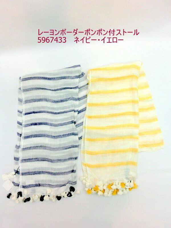ストール ファッション小物 レディースファッション レーヨン ボーダー ポンポン付ストール トロミある生地 パステル調 可愛いポンポン 春夏のオシャレ 首周りのUVケア 【3001-11074543】