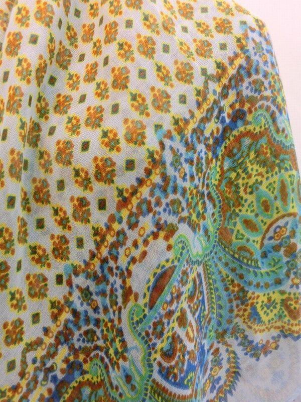 UV加工付きのスクエアタッセル付ストールです。四角ストールで、小紋ペルシャの上品なプリントで春夏のオシャレや日焼け防止にもお使いください。