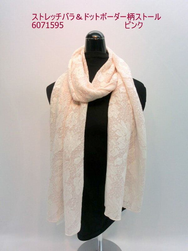 ストール ファッション小物 レディースファッション ストレッチ バラ ドットボーダー柄ストール 伸縮性あり ドット柄 浮き出たように見える オシャレ 高級感ある 豪華 首周り 春夏のオシャレ UVケア 【3001-11093811】