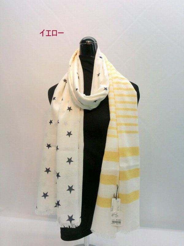 ストール ファッション小物 レディースファッション コットン 星ボーダー 切替柄 サラサラ 肌に優しい 綿100%生地 星 3段階の太さのボーダー プリント 色々なオシャレ 春夏 首周りのオシャレ UVケア 【3001-11093819】