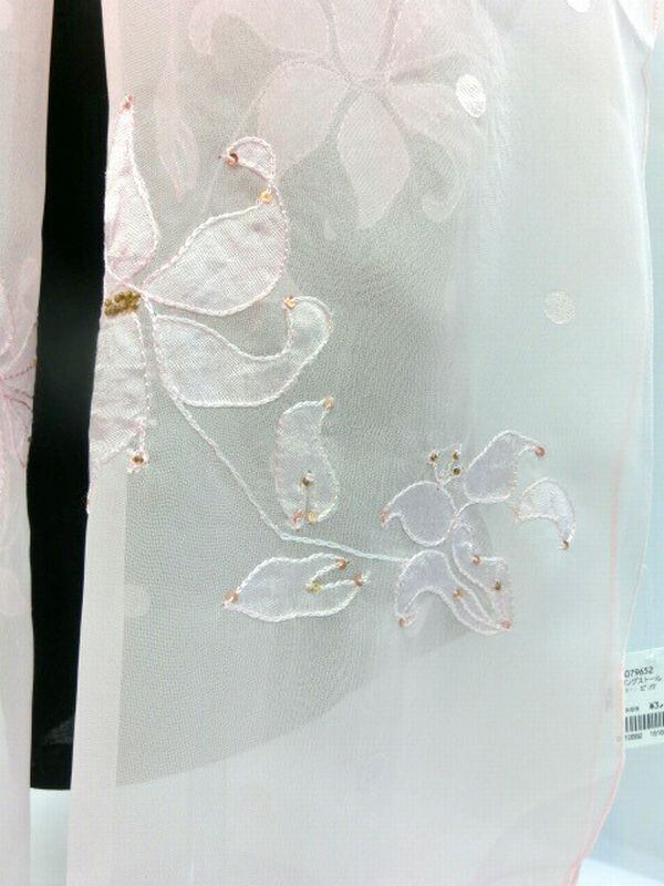 生地にオパール加工を施し、チェーンステッチ、ビーズ&スパンコールの飾り付きのストールです。軽くふんわりと巻け、ゴージャス感満載!