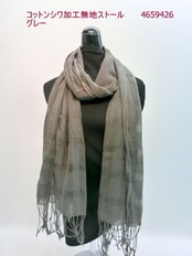 高級感のある、ボーダージャガード柄にサラサラのコットン100%シワ加工無地ストールです。春夏ファッションのポイントにまたUVケアにも、ぜひお使い下さい。