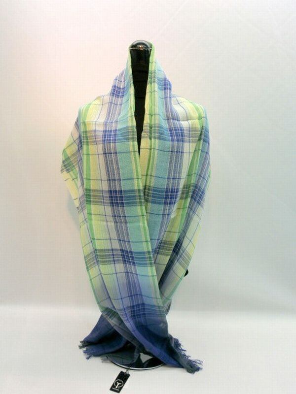 サラサラで柔らかな肌に優しい天然繊維綿100%生地にチェックオンブレー柄をプリントしました。ビッグサイズなので、肩~首にも余裕で巻け春夏のオシャレができます。