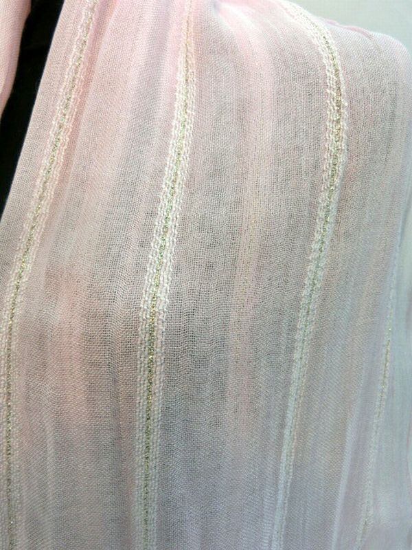 柔らかくさらりとした細番手のレーヨン糸とラメ糸でガーゼ風に織りあげた柔らかな日本製ストールです。春夏のファッションのポイントにオシャレにレーヨンラメ入り無地ストールをどうぞ。