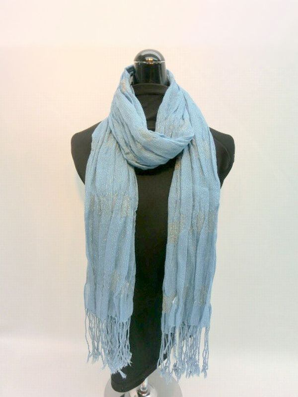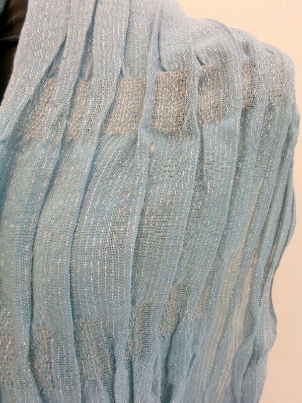 薄めの生地にラメをいれ、シャーリング加工とプリーツ加工を加えた豪華で高級感のあるオシャレなストールです。シンプルなので使い勝手抜群。