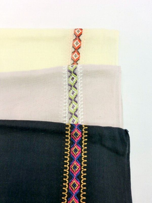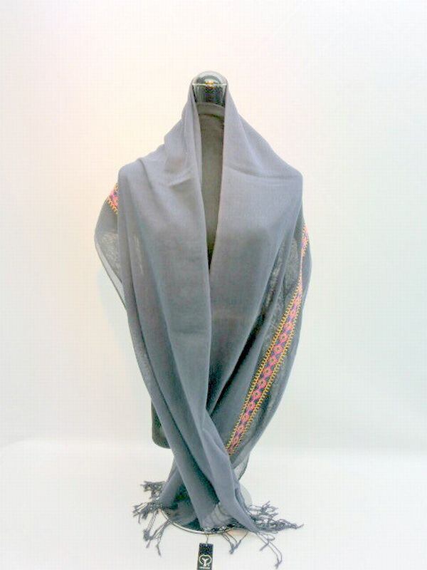 ビッグサイズで肌に優しいコットン100%生地ストールです。両側にエスニックライン刺繍を施しました。