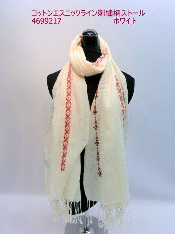 ストール ファッション小物 レディースファッション コットン エスニックライン 刺繍柄ストール ビッグサイズ 肌に優しい 刺繍 春夏のオシャレ UVケア 【3001-11102456】