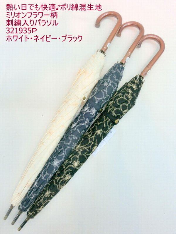 日傘 傘 ファッション小物 レディースファッション 長傘 熱い日でも快適 ポリ綿混生地 ミリオンフラワー柄 刺繍入り パラソル 伝統的手法 エレガント クラシカル 暑い真夏日 快適な日陰作る 上からの直射日光熱抑える 紫外線対策 オシャレ 可愛い 【3001-11157697】