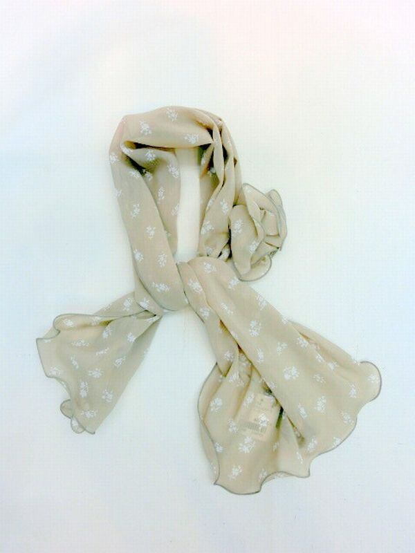 可愛い花モチーフがついている小花チラシ柄プリントスカーフです。薄手の生地なので巻きやすく、秋冬のオシャレのポイントに◎