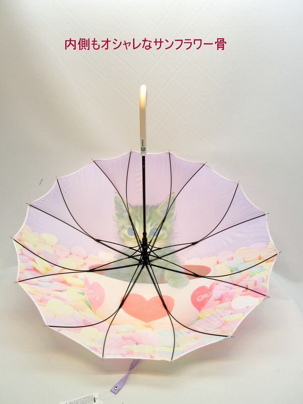 雨傘 傘 ファッション小物 レディースファッション 長傘 婦人 猫と飴柄 一枚張り オシャレ サンフラワー骨 ジャンプ傘 開くと花が咲いたよう シルエット ジャンプ雨傘 枝分かれ式 16本骨 花のよう 内側オシャレ ポップでカラフルな飴 目を引く猫 飴柄 雨漏りの心配軽減 柄の途切れない デザイン性高い雨傘 【3001-11534615】