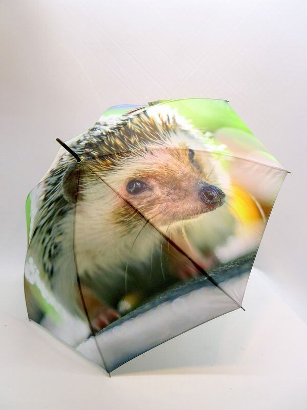 柔らかなポンジー生地に、鮮明な全面デジタルプリントで大胆なハリネズミ柄をプリント!まるで1枚の大きな写真のような雨傘です。