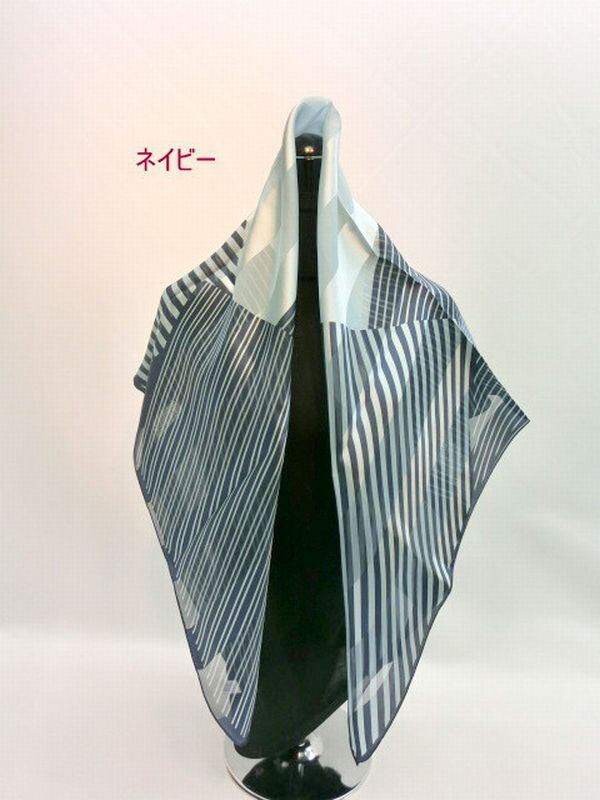 スカーフ ファッション小物 レディースファッション 高級感のある シルクサテン ストライプ パッチライン柄 日本製 四角 大判スカーフ 艶感ある 上品 シルクサテンストライプ 光沢 溶け込むよう 滑らかタッチ生地 四角シルクスカーフ 秋冬 首元のオシャレ ベルトの代わり 腰に巻いたり 幅広い用途に使える 大判サイズスカーフ 【3001-11802331】