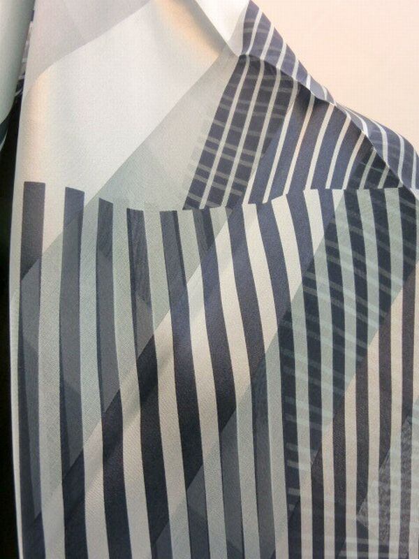 艶感のある上品なシルクサテンストライプの光沢と、溶け込むような滑らかなタッチの生地使用のパッチライン柄の日本製四角シルクスカーフです。秋冬の首元のオシャレとしては勿論、ベルトの代わりに腰に巻いたり幅広い用途に使える大判サイズのスカーフです。