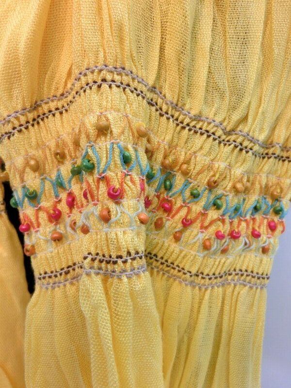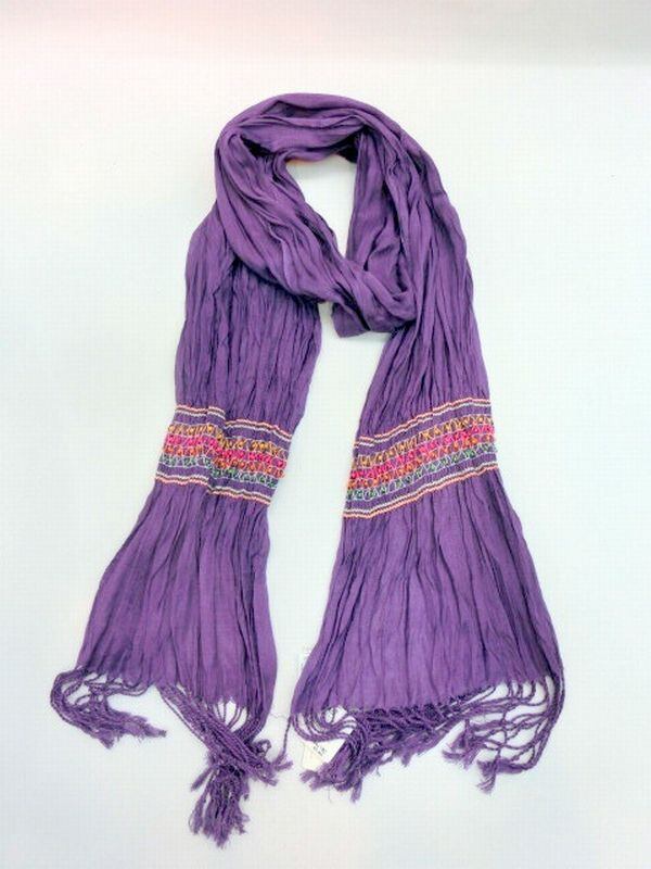 柔らかアクリル素材の無地生地に、豪華なカラフルスモッキング刺繍を施したストールです。シワ加工&ライン刺繍がオシャレ感を演出しています。