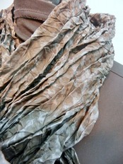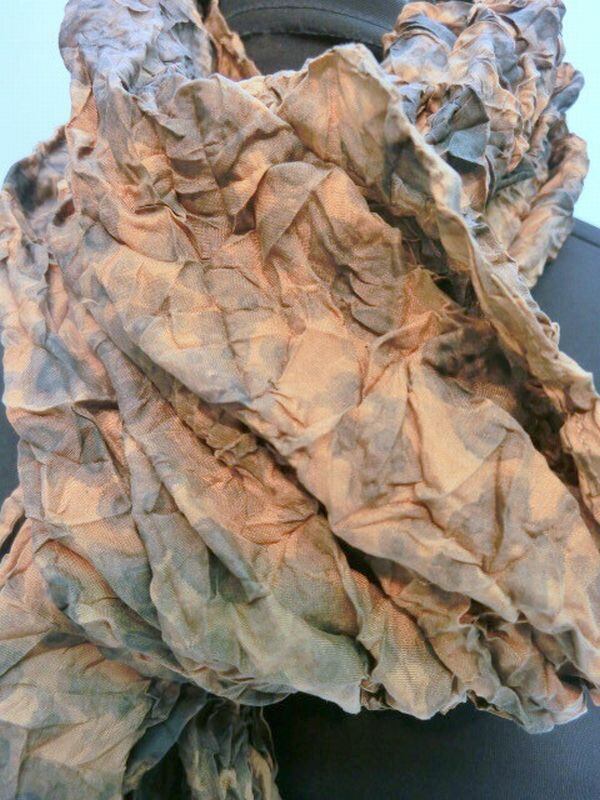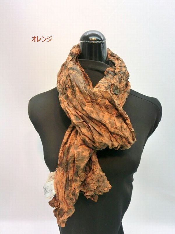 墨をたらしたようなシルクプリントをシワ加工してあります。秋冬の首周りのオシャレにぴったりのスカーフです。