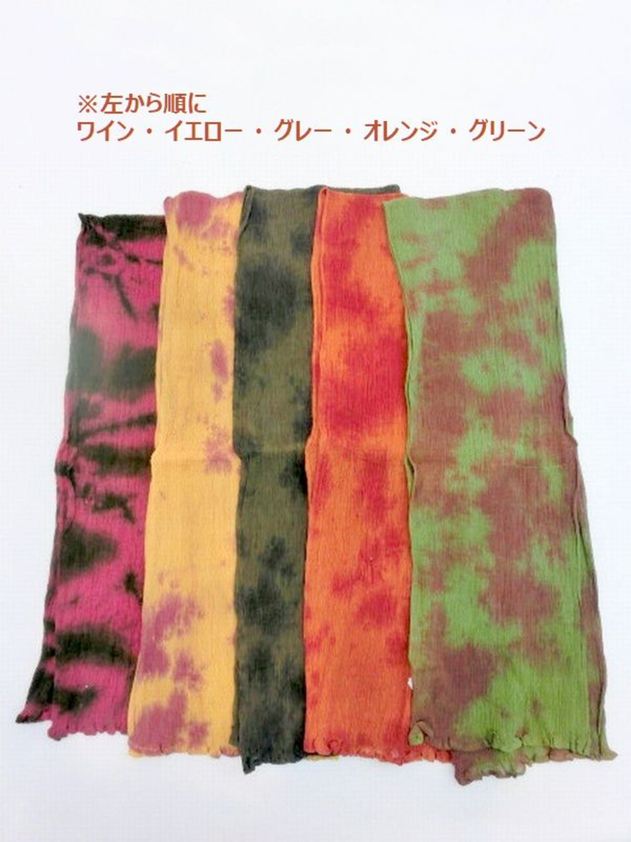 ストレッチ感があり肌にしっくりなじむレーヨン混のスカーフ。しぶいダークカラーにムラ染めしてあります。