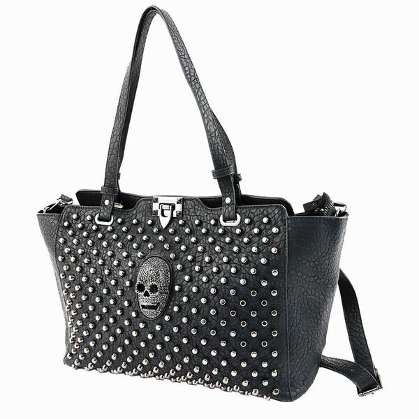 トートバッグ レディースバッグ レディースファッション ショルダーバッグ 2WAY ハンドバッグ スカル スタッズ ゴシック ビジュアル系 ゴスロリ 多数スタッズ デコレーションスカル 総柄裏地 ROCKテイスト満点 フェイクレザー 使い易いサイズ スカルデコレーション 全面スタッズ 脱着式ショルダーベルト付属 重厚感ある質感 普段使い ちょうどいいサイズ感 レディース メンズ ジェンダーレス 裏地 総柄 スカルプリント 迫力有り 重厚感有り 【3034-10411119】