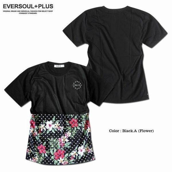 半袖 Tシャツ カットソー トップス メンズファッション メンズ 花柄 星柄 フラワー スター 夏 ダンス 衣装 切替 シャツ ブラック 黒 星の総柄プリント オシャレデザイン ダンス衣装 オススメTシャツ フラワー柄 スター柄 2パターン 【3034-10500841】