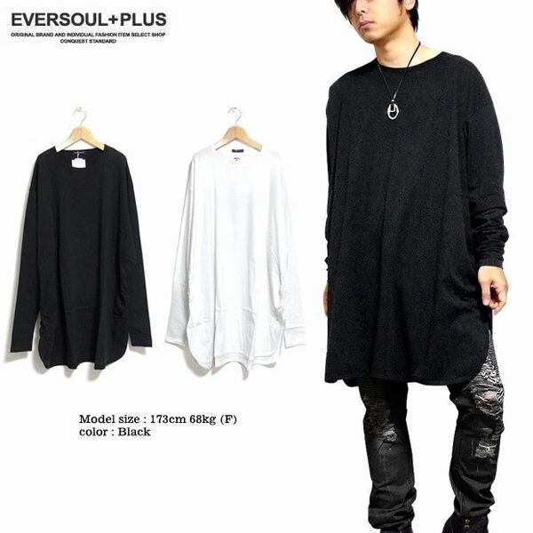 左右の裾はシャーリングのプリーツ仕様になっており、男女問わずジェンダーレスのオススメのスーパーワイドシルエット長袖ロング丈Tシャツです!