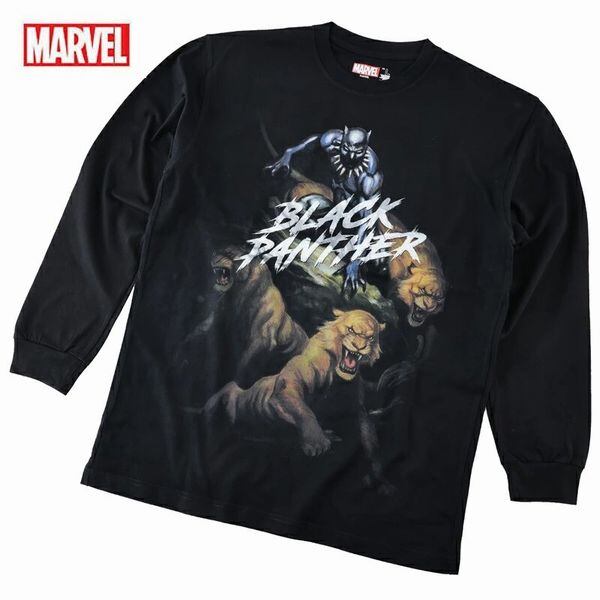 長袖 Tシャツ カットソー トップス メンズファッション MARVEL ロンT ブラックパンサー BLACK PANTHER マーベル アメコミ アベンジャーズ キャプテンアメリカ アメコミブランド キャラクター 激シブロンT 武術の達人 カッコいい 長袖Tシャツ スパイダーマン おなじみ コミックス ヒーロー プリント 激シブ長袖Tシャツ 大きくプリント 存在感抜群 正規ライセンス 並行輸入商品 【3034-10979513】