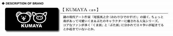 「くまや」は正式に商標登録されたブランドで、雑誌・テレビドラマの露出はもちろん、東京六本木で何度も「くまや」オンリー個展を開くなど、日本人はもとより、とくに外国人に愛されているグローバルワイドな癒し系ブランドです。