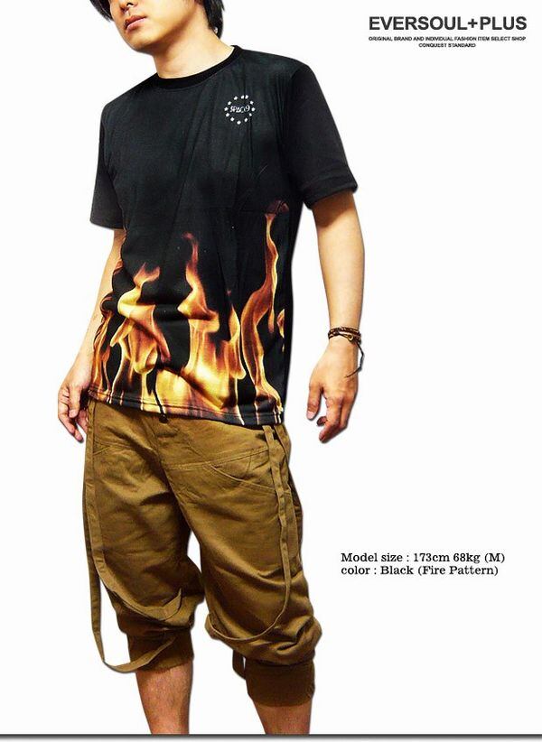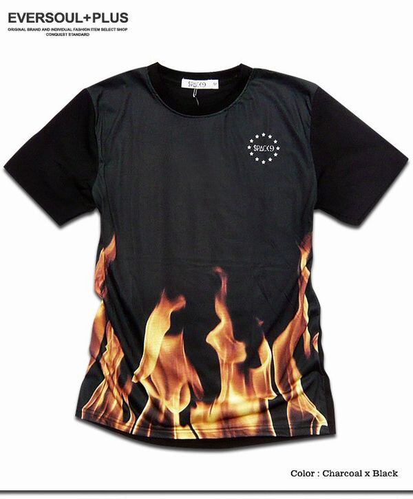 ☆ファイヤーパターンや花柄、水玉、星柄等のフルカラーインクジェットプリントがインパクト大の半袖メンズTシャツ!配色切替ボディにインクジェットプリントが映えます!ストリートでも注目度抜群のフルカラーTシャツ!ダンス衣装やビジュアル系バンドの衣装にもオススメです!