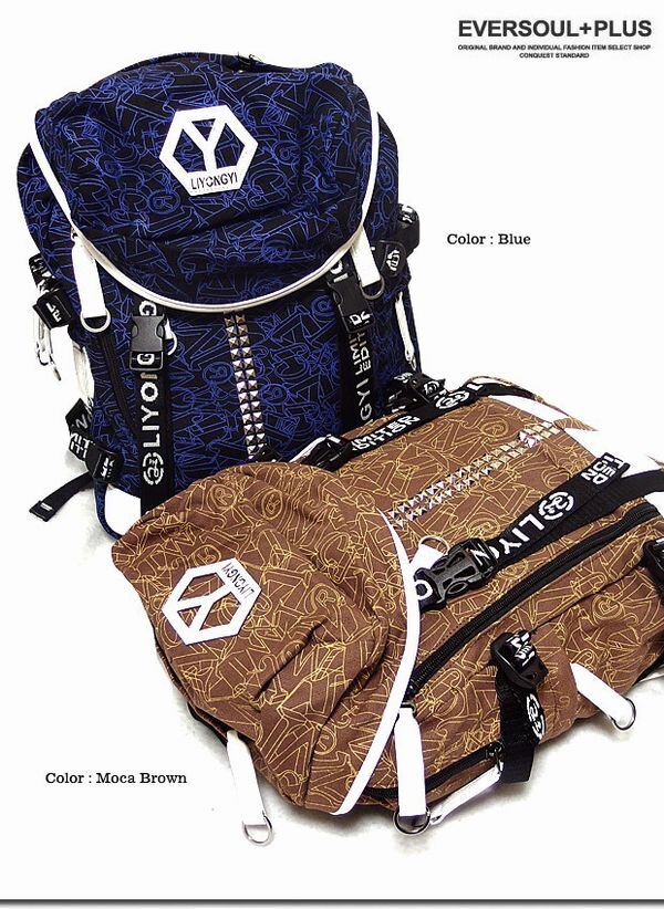★外側、内側共にとにかく豊富なポケット収納で実用性抜群の総柄ロゴプリント入りリュックサック!ロゴ入りのベルトや縦ラインのピラミッドスタッズ等デザインも凝っています!これだけ収納があればほとんどの荷物が持ち運べるので通勤・通学のお供にも最適なリュックサック(デイバッグ)です!