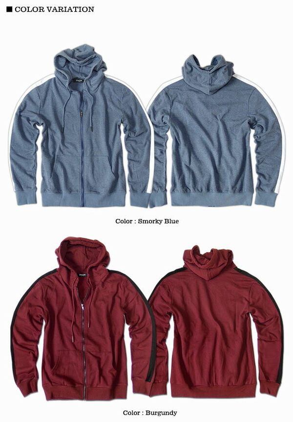 ★シンプルなデザインで使い勝手抜群の袖ライン入り裏起毛ジップアップパーカー!ベーシックなデザインに厚手でしっかりとした質感でヘビロテ確実です!人気のスポーツミックススタイルにもオススメのライン入りジップパーカーです!