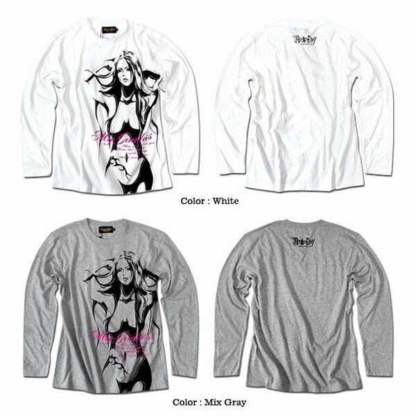 ★エロかっこいいガールプリントが超クール!!★ロック系スタイルにもオススメのロングTシャツです★